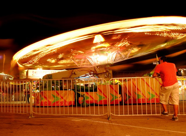 A few nights ago, I was home alone and feeling like I needed to go do something. Since the apartment is just a few blocks away from the Central States Fairgrounds, I loaded up my camera gear (which, really, is just a small bag and a tripod, but I feel all awesome saying "camera gear.") and walked over to the fair.